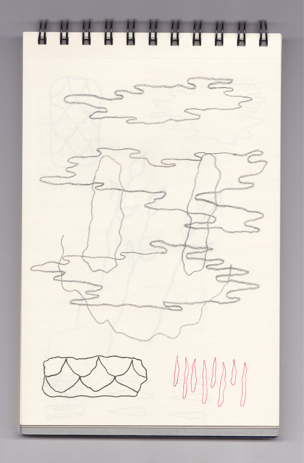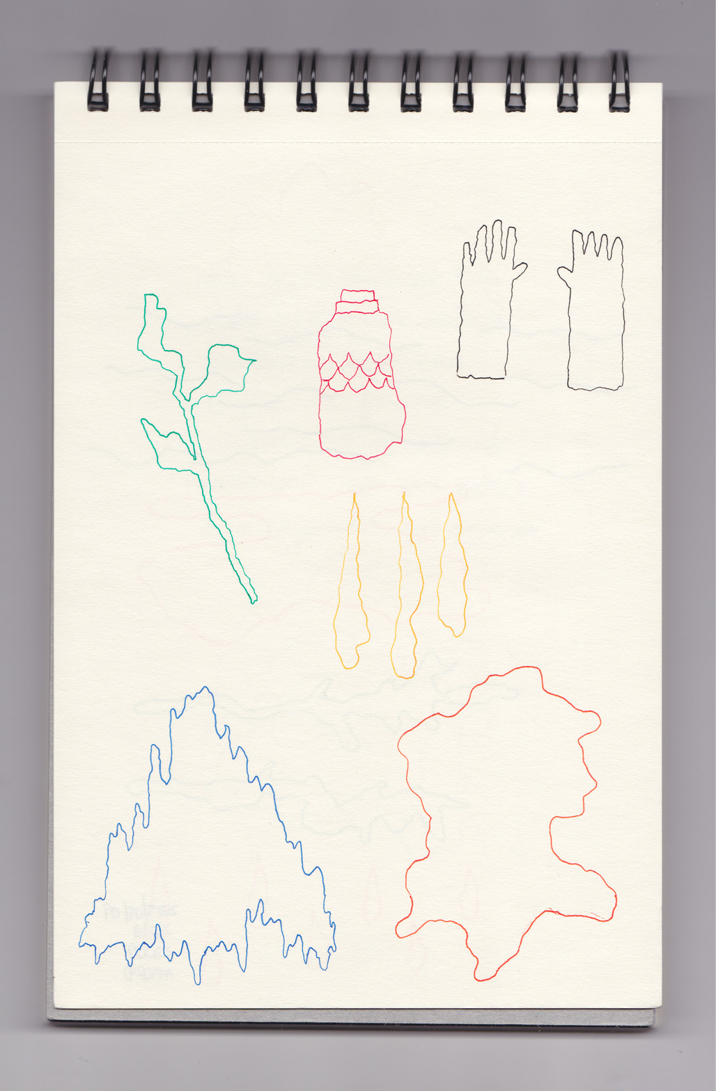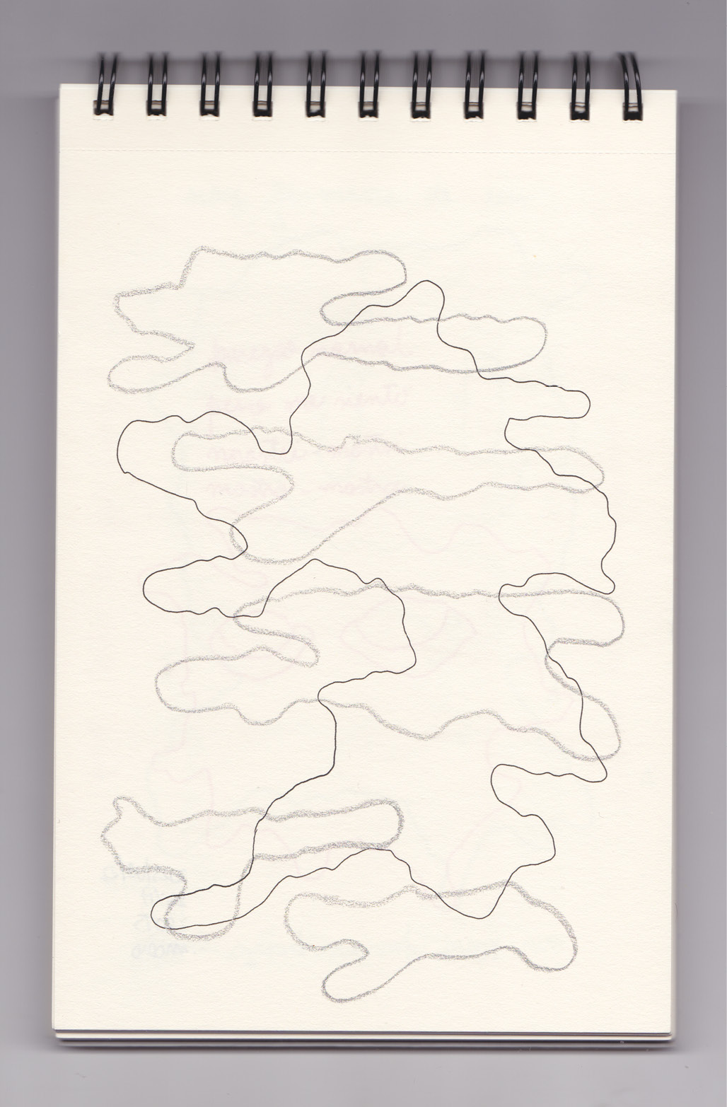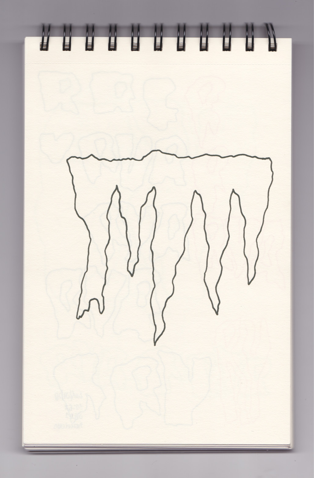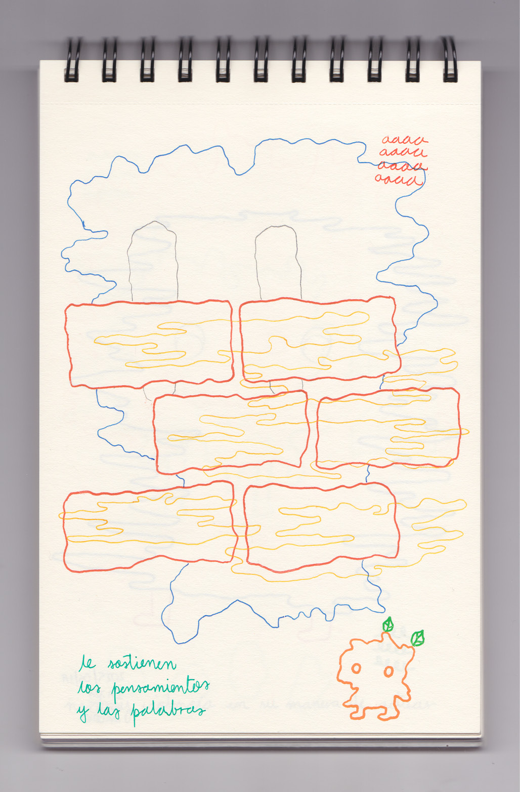 Igual que Libreta de dibujos 01, esta libreta reúne 60 dibujos realizados entre el 17 de julio de 2024 y el 9 de septiembre de 2025. No responden a una idea fija, sino que surgen del deseo de experimentar con distintas técnicas sobre papel. Son registros espontáneos que aparecen cuando no pienso.