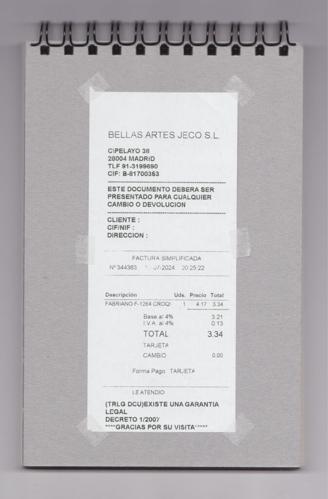 Like Libreta de dibujos 01, this notebook gathers 60 drawings made between July 17, 2024, and September 9, 2025. They do not follow a fixed idea but arise from the desire to experiment with different techniques on paper. These are spontaneous records that appear when I stop thinking.